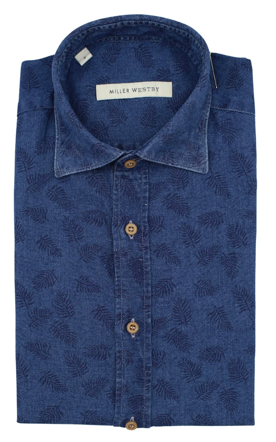 Crafted from dark chambray fabric, this BRUSH piece features a subtle yet sophisticated leaf print that adds a natural, refined touch. The combination of durable chambray and elegant botanical detailing makes it a versatile choice for those seeking both style and quality in their wardrobe.