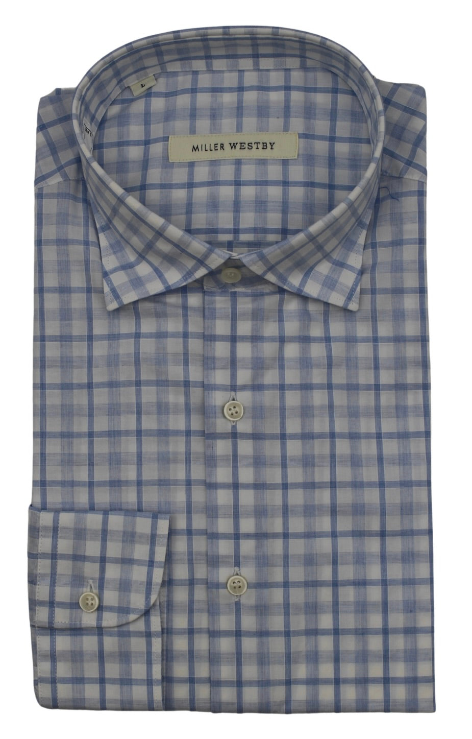 The EVAN shirt features a subtle light blue plaid pattern crafted from 100% cotton, offering breathable comfort and a refined, understated style. Ideal for both professional and casual settings, its natural fabric ensures durability and ease of care while maintaining a polished appearance.