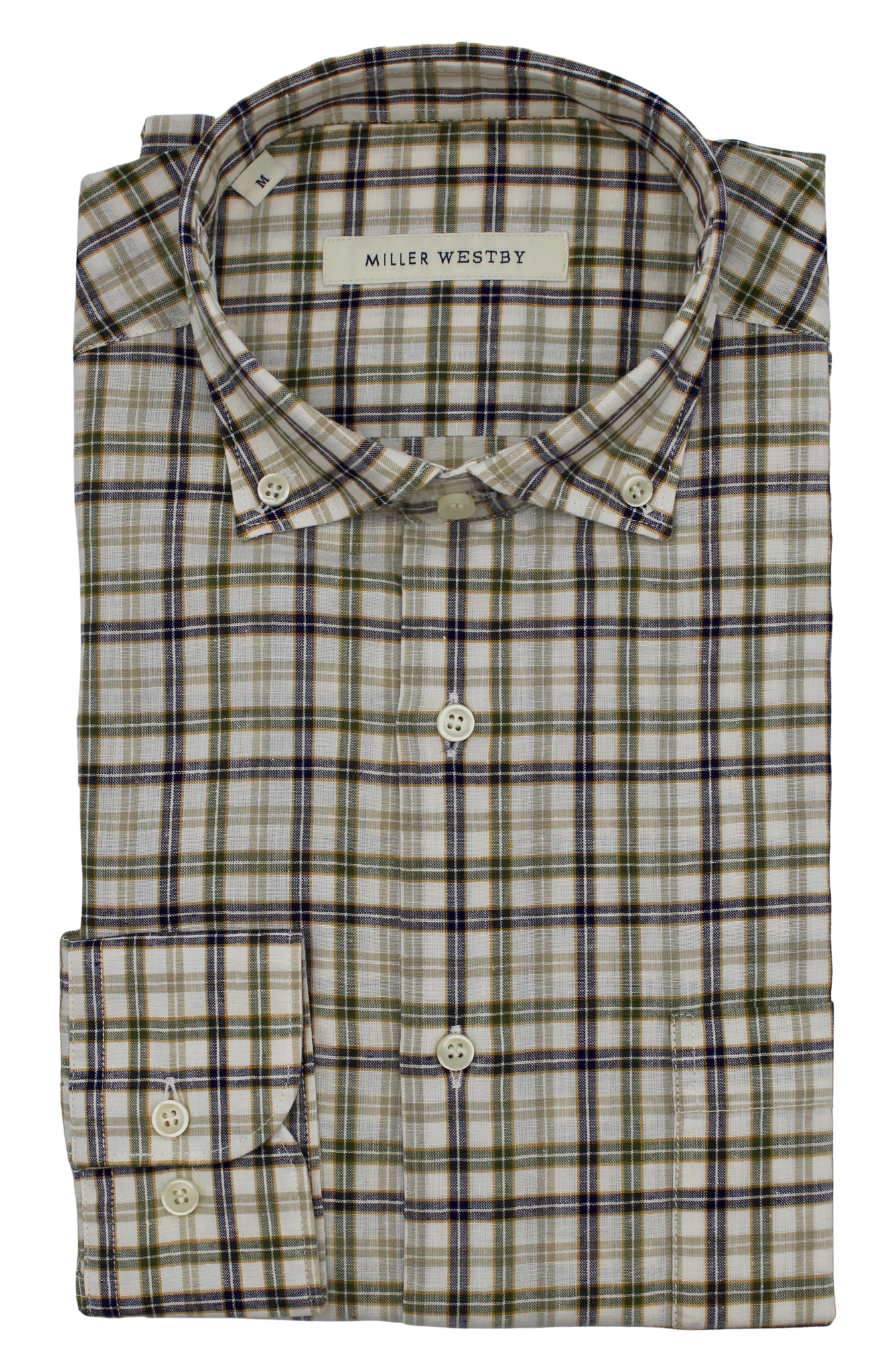 The PHILLIP features a sophisticated plaid pattern crafted from a premium linen-cotton blend, combining breathability with durability. Offered in an olive, navy, and tan plaid, this fabric delivers expert-level comfort and timeless style, perfect for refined, versatile wardrobe pieces.