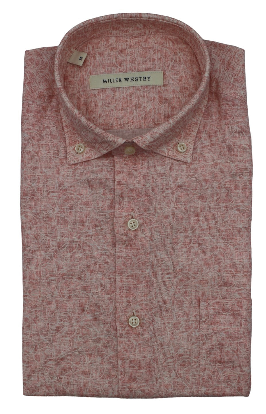 The ROWAN shirt features a subtle red print that adds a refined touch to its design. Crafted with short sleeves finished with neat cuffs. This piece balances understated style with expert tailoring, making it a versatile addition to any wardrobe.