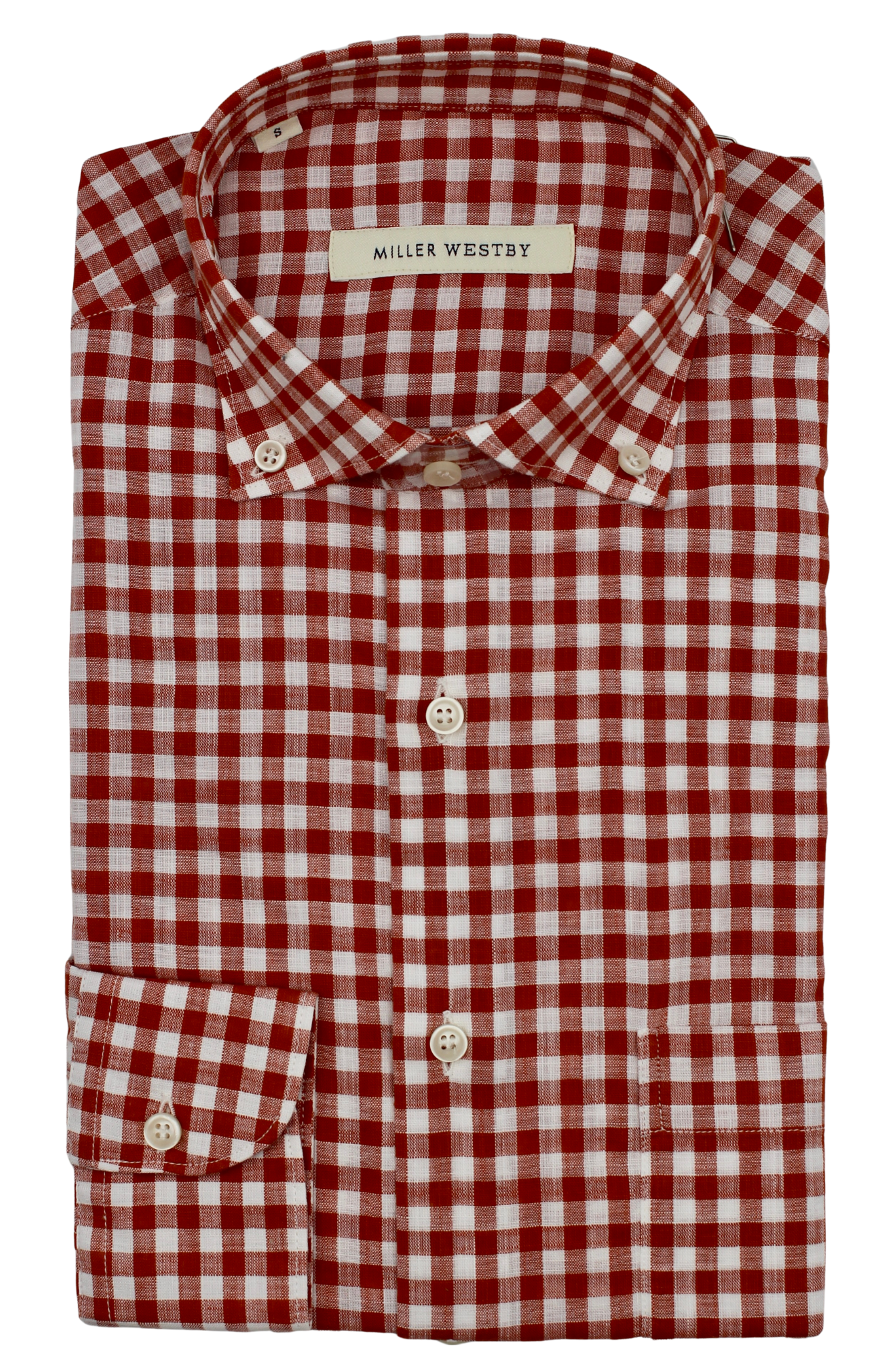 Elevate your wardrobe with the Yard shirt, featuring a bold burnt orange gingham pattern that bring a vibrant yet classic touch.